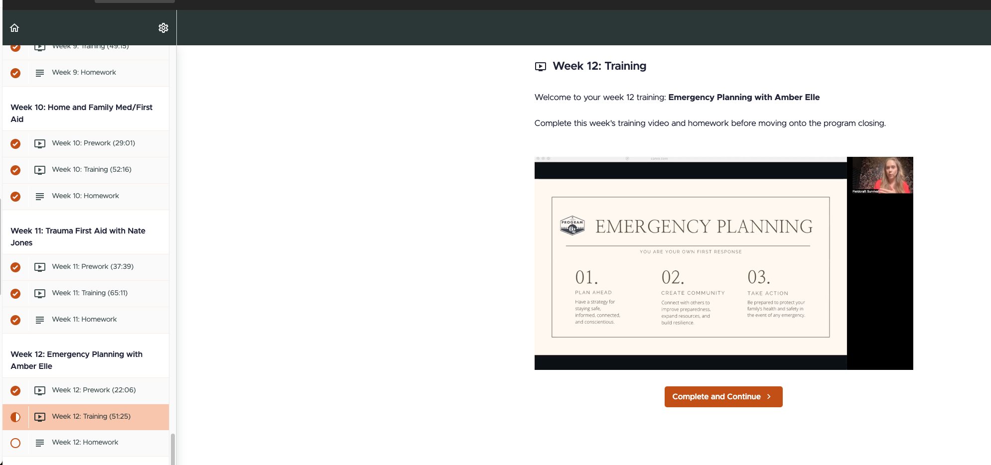 Main Course: The main course of instruction is an approximately one hour long instructional video that works through the blueprint workbook and gives you the direction and guidance for building out your preparedness plan.